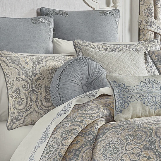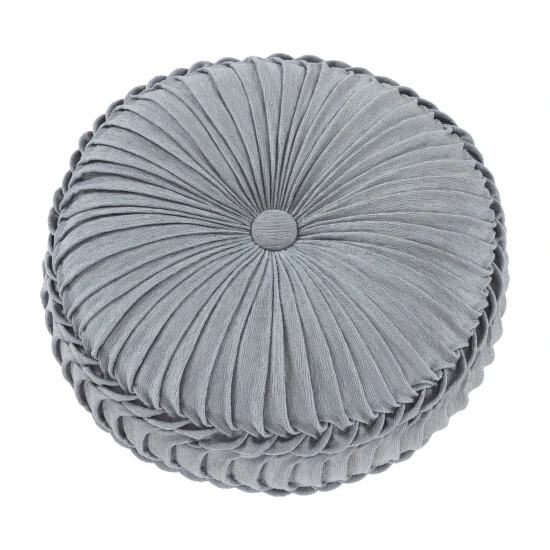 The Angelo Tufted Round Pillow uses a beautiful spa chenille to create a one of a kind accent to this bedding ensemble. This 15″ unique pillow is sewn by hand and is finished with a fabric covered button on both sides. Pair it with the Angelo bedding set by Five Queens Court for a complete elegant look.