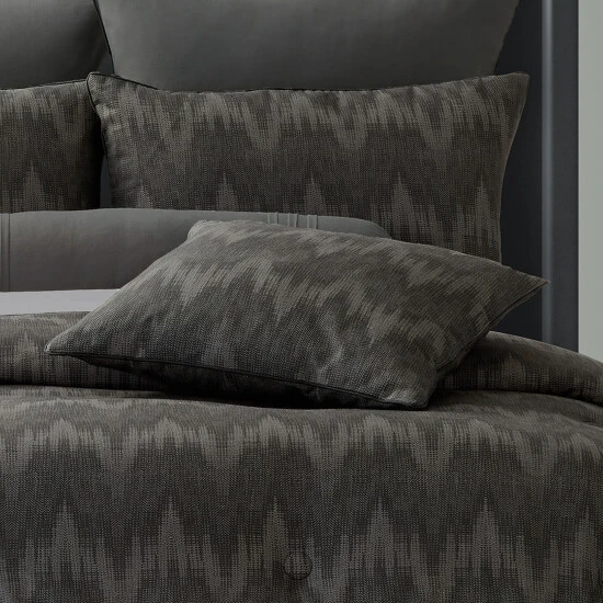 The Archer 20″ decorative pillow features a plush linen-like 100% cotton slub for a luxurious hand-feel. Designed with a modern textured herringbone graphic in blended shades of black and charcoal grey, with thoughtful pattern placement to create a dramatic yet soothing atmosphere in your bedroom. Add the coordinate comforter or duvet cover to complete your casual yet refined look.