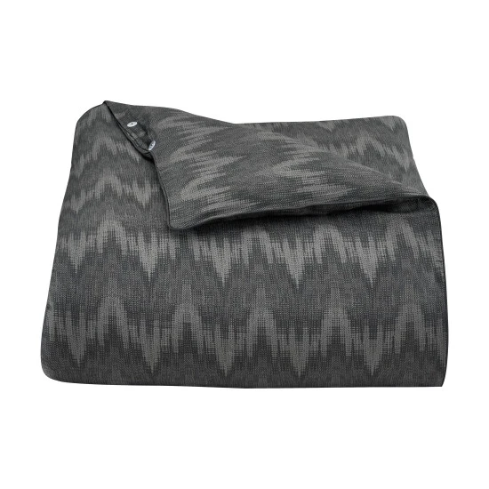 The Archer Duvet Cover offers a classic and sophisticated style to your decor. A modern textured herringbone design is printed on a plush linen-like 100% cotton slub. Shades of black and charcoal grey with a textured graphic effect are tailored for a masculine feel, creating a soothing atmosphere in your bedroom. The duvet is completely reversible and finished with a solid binding and a hidden button closure.