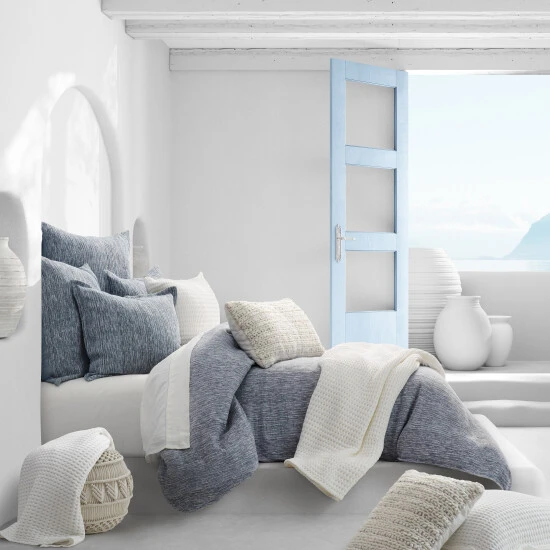Inspired by luxury yet casual Beach House decor, the Bali Duvet Cover offers relaxed versatility and effortless elegance to your sleep space. Crafted in Portugal from fine cotton yarns that develop incredible comfort and softness over time. A ripple-texture woven fabric in a gorgeous deep blue and crisp white, gracefully adorn this breathable lightweight duvet. The duvet includes a hidden button closure and reverses to a solid blue cotton, which adds a refreshed dimension to your space, and coordinates beautifully with the Bali and Sandpiper collection.