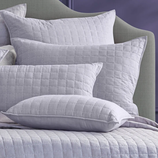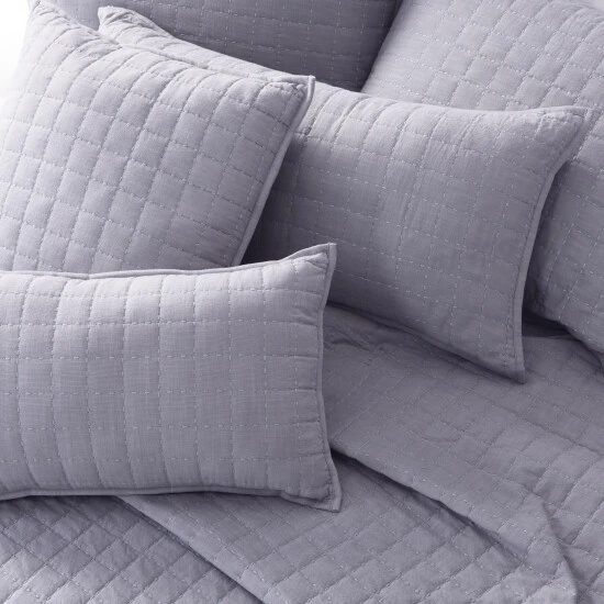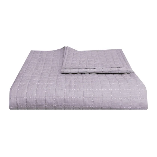 The Caden Quilt Set offers a tonal touch of dusky lavender to reshape your space into a relaxing retreat. The mediumweight quilt is great on its own or layered and is constructed with box quilting, using a thick running stitch in coordinating grey yarns, which is inspired by the Kantha technique. The 100% Cotton fabric has a very soft linen-like hand which gets softer over time, making it a timeless addition to your home decor. The included shams are quilted with matching stitching to complete this soothing ensemble.