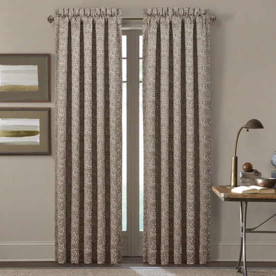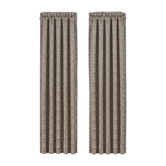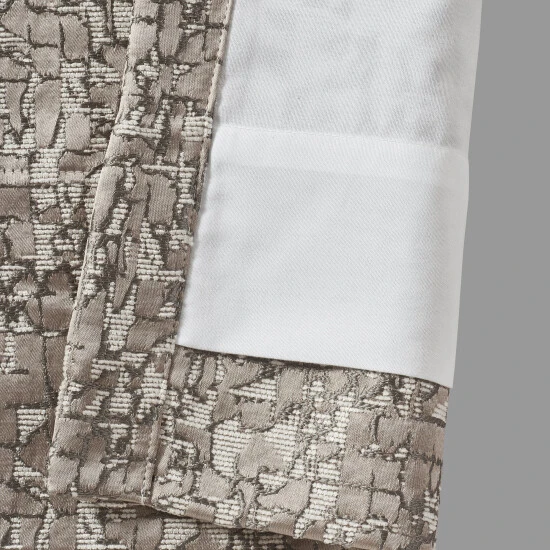 The Calgary Panel Pair uses a contemporary jacquard that is multi-dimensional to create a one of a kind look. The many shades of taupe and ivory are composed and cool. These lined panels drape beautifully on your window and can be used in any room of the home.