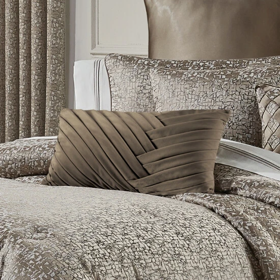 The Calgary boudoir pillow is asymmetrically pleated in two directions creating an intersecting effect. This contemporary design is made using a plush velvet that is soft and luxurious.