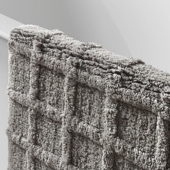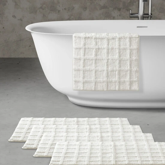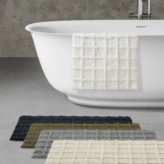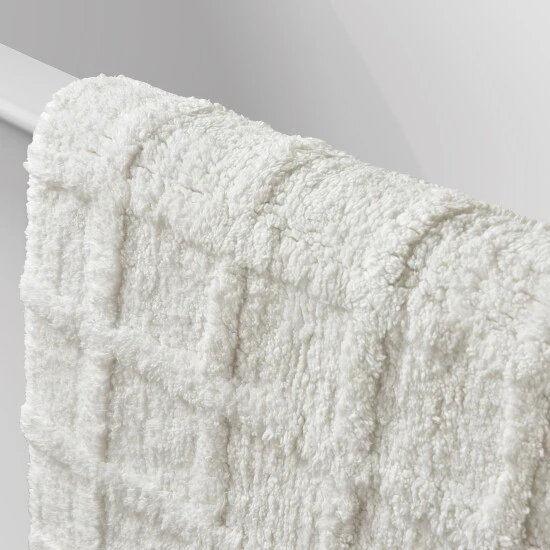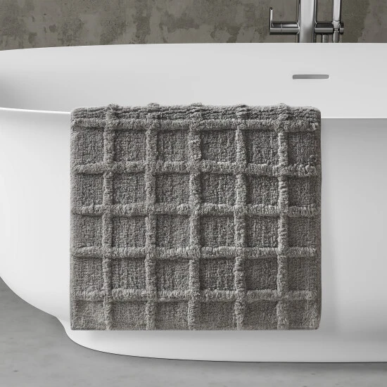 Add a clean classic touch to your bathroom decor with the Carter Bath Rug. Constructed with 100% Cotton over-tufted panes that are highly absorbent and it features an anti-skid backing. It is super soft and machine washable for easy cleaning and long lasting durability. Pair this bath mat with the Carter shower curtain and bedding collection to complete the trending modern look (Each sold separately). The texture rug is 20 inches long by 30 inches wide, which fits perfectly with most modern vanities.