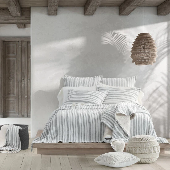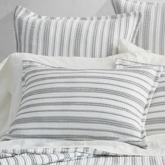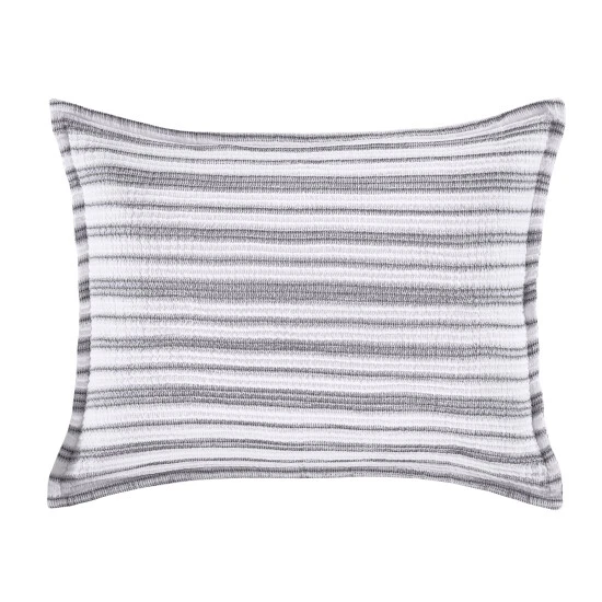 Crafted in Portugal from exceptionally fine 100% Cotton yarns, the Crystal Cove Pillow Sham adds relaxed versatility and effortless layering to your dΓ©cor. Incredibly soft and uniquely constructed with a crinkled textured which is woven in white and soft grey stripes. This lovely accent is finished with a flange trim, adding a refreshed dimension to your space, and coordinates beautifully with the Crystal Cove collection.