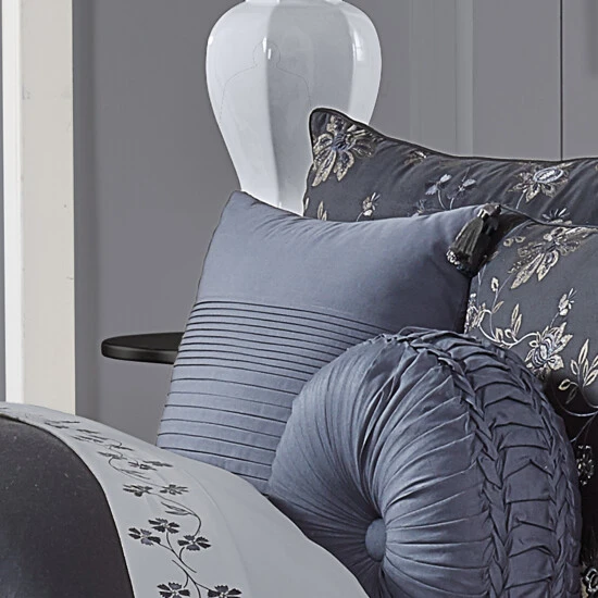The Danielle 18″ Decorative Throw Pillow features a lovely blue satin fabric with pleating in the center and two colored tassels in each corner for added detail. Pair this lovely 100% Cotton accent pillow with the Danielle bedding set by Five Queens Court for a complete elegant look.