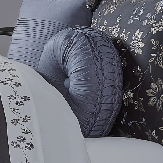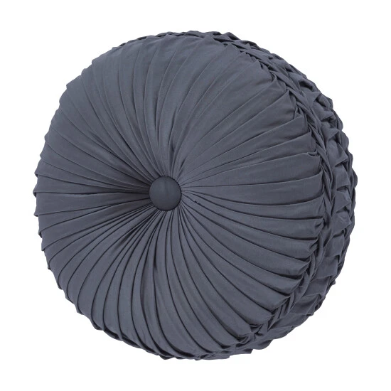 The Danielle Tufted Round Pillow uses a sleek blue Cotton satin fabric to create a one of a kind accent to this bedding ensemble. This 15″ unique round pillow is sewn by hand and is finished with a fabric covered button on both sides. Pair it with the Danielle bedding set by Five Queens Court for a complete look.