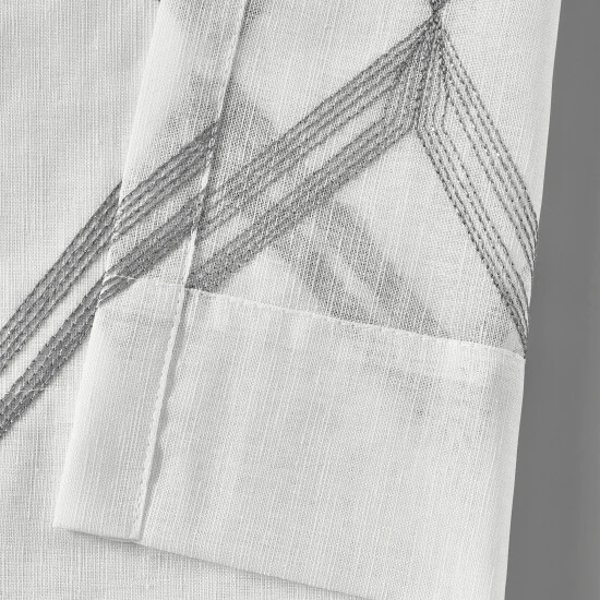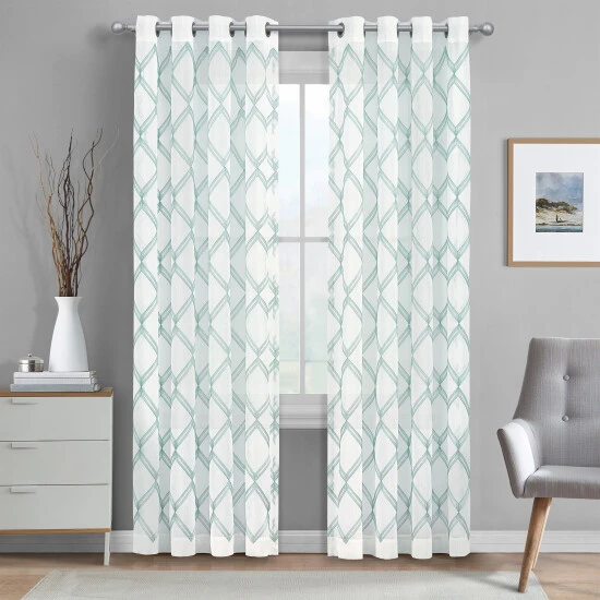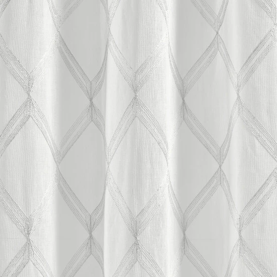 Add a stylish accent window treatment to your home decor with this subtle metallic embroidered airy window sheer. This panel features an allover embroidered geometric diamond design which truly catches the eye. It brings a chic and modern element to any room and filters light beautifully. Easy hanging hassle-free setup with the grommet top construction. These panels are carefully custom cut to create a perfect match when hanging 2 panels. Available in 3 fashionable colors and 3 sizes to fit most windows in your home.