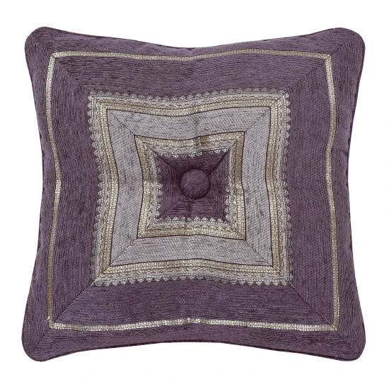 The Dominique 18″ Decorative Throw Pillow is exquisite with its sophisticated use of gold and lavender colors. This beautiful square accent pillow is rich with a mitered woven jacquard stripe on the front and solid indigo on each side and is finished with a 1/4″ piping for added detail. Pair this pillow with the Dominique bedding set by Five Queens Court for a complete look.