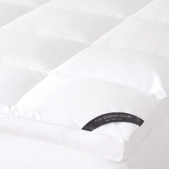 The Five Queens Court Elite overstuffed mattress topper adds an additional layer of cloud-like comfort to your mattress for an incredible sleep experience. The plush 300 thread count 100% Cotton top mattress topper features ComforDryβ’ technology which helps keep your sleep surface cool and dry by wicking away moisture for a more comfortable nights’ sleep. Also featuring NuAirβ’, an allergen-barrier fabric to guard against dust mites, pet dander, pollen, and other allergens from penetrating the bedding. Β The topper is filled with down-like hypoallergenic fiberfill which provides superior support and a silky smooth surface. The mattress topper is box quilted to prevent fiber shifting and crafted with a 2″ gusset on all sides for added loft, support, and breathability. The 4-way deep pocket stretch skirt can fit up to a 21″ mattress. Available in Twin, Full, Queen, King and Cal King sizes.