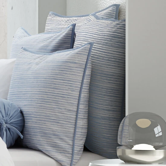 The Finley Euro Sham is reversible with a hidden zipper closure and features a powder blue and white brushstroke design to create a refined contemporary look that compliments any dΓ©cor.