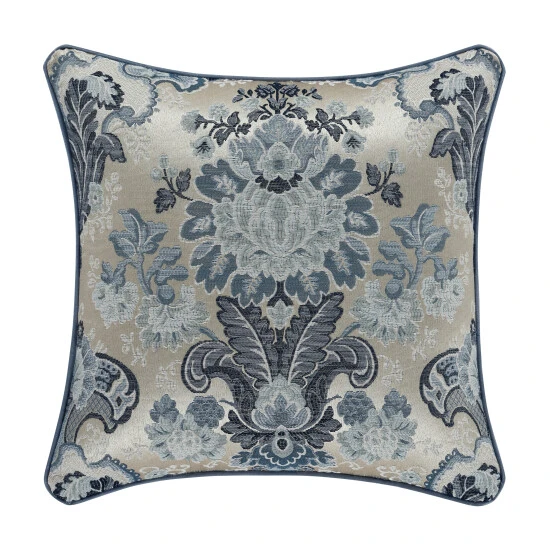The Geraldine 18″ Decorative Throw Pillow is exquisite with its bold use of indigo and silver tones. This beautiful square pillow is rich with a traditional woven jacquard floral design on the front and solid indigo satin on the back. This pillow is reversable, with a satin finished look on each side. Finished with a 1/4″ indigo piping. Pair this pillow with the Geraldine bedding set by Five Queens Court for a complete look.