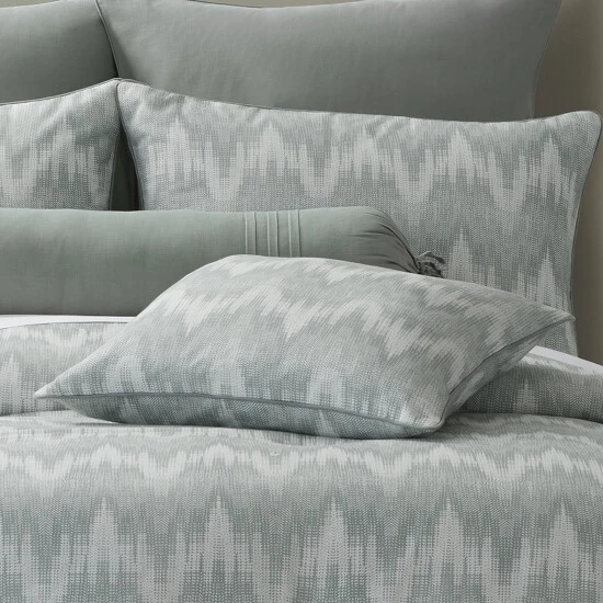 The Haiden 20″ decorative pillow features a plush linen-like 100% cotton slub for a luxurious hand-feel. Designed with a modern textured herringbone graphic in blended shades of aqua blue and grey undertones, with thoughtful pattern placement to create a soothing atmosphere in your bedroom. Add the coordinate comforter or duvet cover to complete your casual yet refined look.