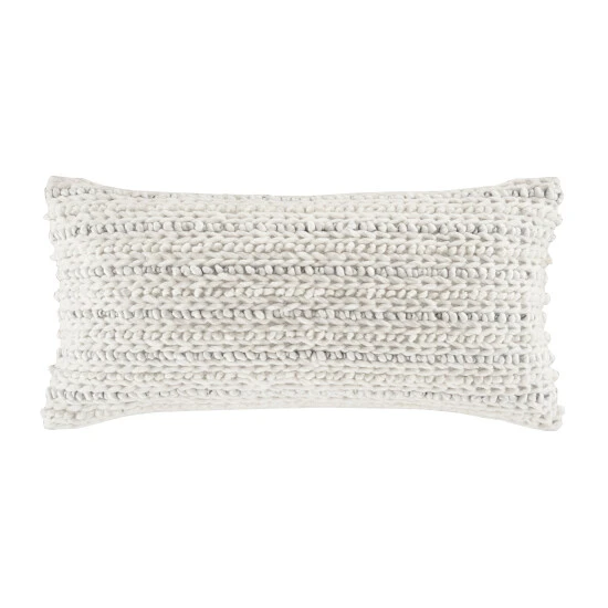 Crafted from exceptionally fine cotton-blend yarns, the Five Queens Court Lumbar Throw Pillow adds relaxed versatility and effortless layering to your dΓ©cor. Uniquely woven with a graceful neutral color combination of silver, white, and grey hues. The chunky-knit construction adds dimension to your space and coordinates beautifully with the White Haven coverlet.
