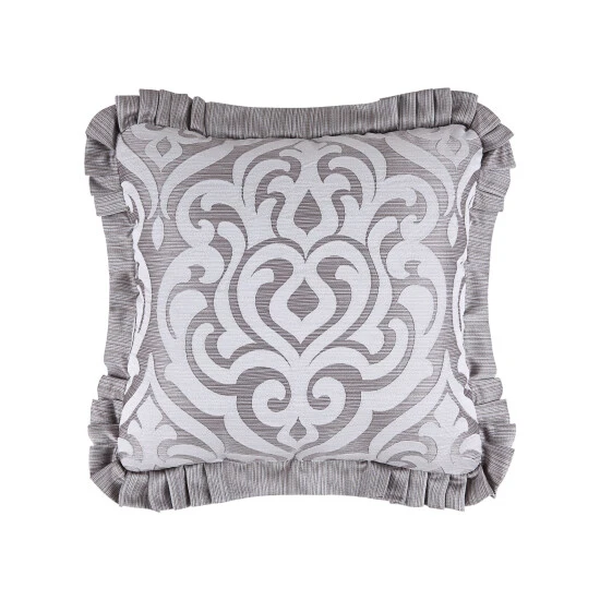 Add the 20″ square pillow to complete the Lafayette Bedding Collection.The large scale antique iron gate damask is perfectly centered and then framed with the luxurious satin, as a 1Β½” pleated flange.The reverse of the pillow highlights the coordinating diamond fabric making the pillow completely reversible.