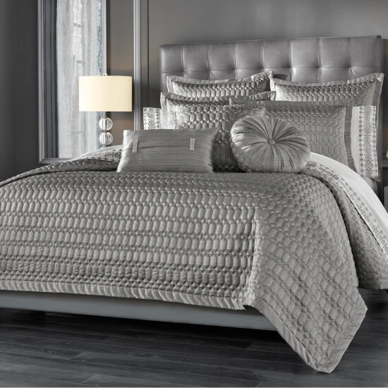 The Lafayette Pillow Sham perfectly matches the glamorous quilt. Featuring a custom geometric quilt pattern with stria stipes in silver tones and a 2″ mitered border with a hidden zipper closure.