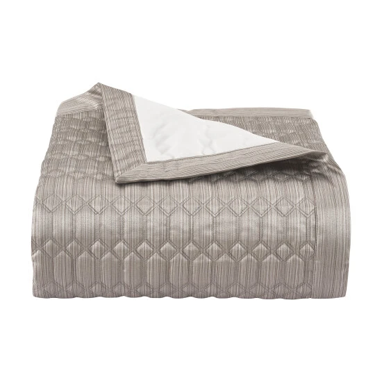 Add some sleek luxury to your bedroom with this glamorous Lafayette Quilt. Constructed with a soft elegant fabric that features a fine stria stripe in two tones of silver with a detailed diamond quilt stitching to create a balance of symmetry and intricate detail. Coordinate shams and pillows are available separately.