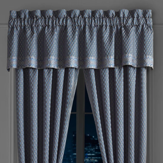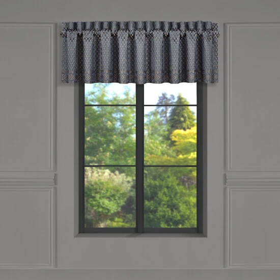 The Leah Straight Window Valance is simple yet sophisticated with a lattice design bordered by a beautifully woven scroll pattern. The 3″ header and 3″ rod pocket make this valance easy to hang. Pair this valance with the Leah bedding collection and window panels by Five Queens Court to complete this look.