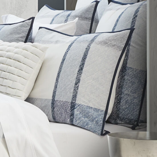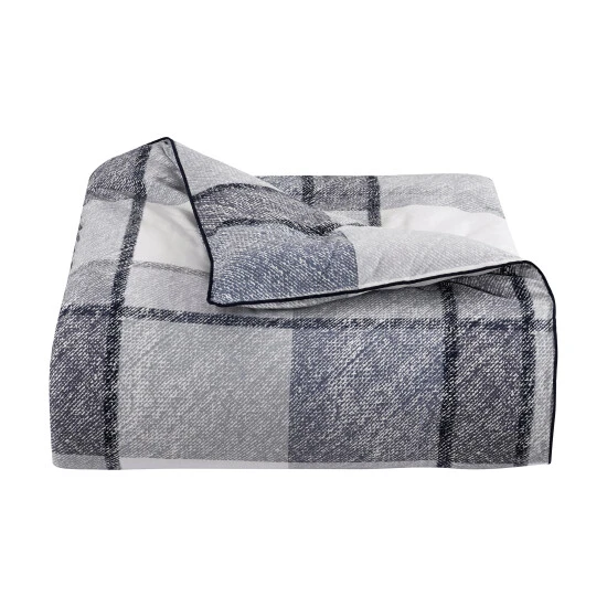 The Louis Comforter Set offers a classic and sophisticated style to your decor. A modern oversized plaid design is printed on plush 100% brushed cotton twill.Β Textured shades of blues and greys, are contrasted with rich indigo blue and crisp white that compliments any dΓ©cor. The oversized and overfilled comforter is completely reversible, with a luxurious hand-feel. The set includes : One comforter and two softly padded pillow shams (1 sham is included for the twin size).
