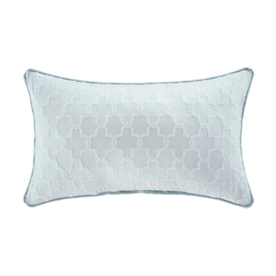 Let style bloom with the Michelle Boudoir Throw Pillow, which features an embroidered geometric ogee border with a calming soft blue and white colorway on soft 100% Cotton fabric. This accent pillow is plush to the to the touch, making it a perfect finishing touch to your home decor. Add the coordinate comforter set or quilt to complete the look.