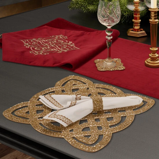Celebrate the season in style with luxurious Christmas tableware that features just the right amount of glamour. The Nicholas 2 Piece Placemats are crafted with hand-braided bugle beads all over. A truly tasteful piece of Holiday glam that pairs beautifully with the Nicholas tableware and home decor. Available in crimson, gold, and evergreen color options.