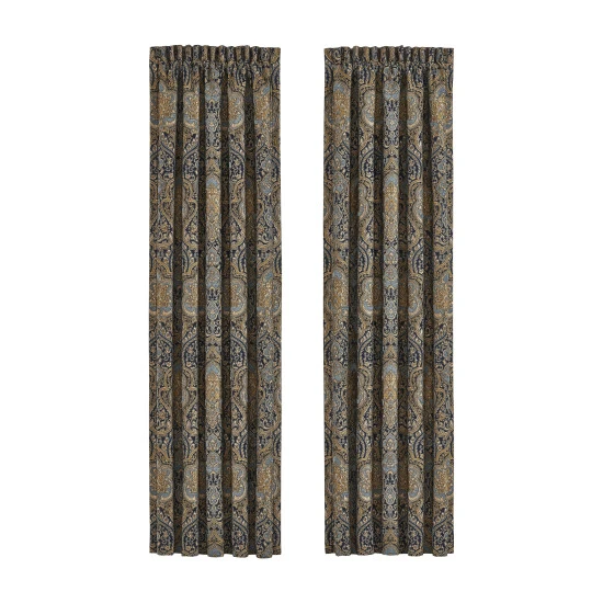 The Five Queens Court Palmer luxury drapery panel pair adds elegance to any room of your home. The panels are lined for room darkening effect and are carefully engineered so that every panel matches when hung side by side. Tiebacks are included to create an open airy look. Valances are sold separately. These lined window panels are intricately woven with a woven damask design to add elegance and style to your decor.