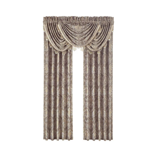These window panels are intricately woven in the chenille damask design. They are custom cut and have an opaque white lining and include coordinating tiebacks.