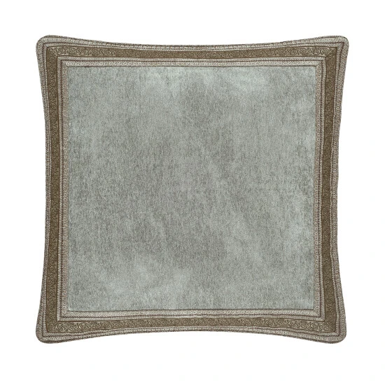 The Euro Sham has the solid Stone Chenille fabric centered on the sham, bordered by the coordinating Chenille scroll stripe, mitered at the edges. The sham reverses to the coordinating chenille foulard fabric. The fine details include a hidden zipper and are finished with a chenille foulard 1/4″ piping.