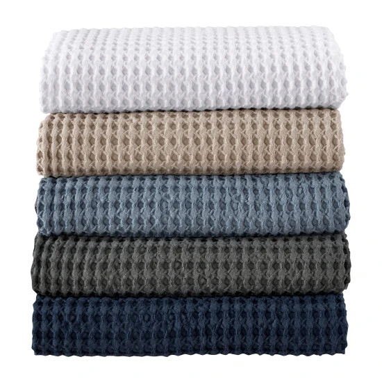 Crafted in Portugal from exceptionally fine 100% Cotton yarns, the Pine Beach Throw Throw offers Malibu Beach House inspired indulgence and incredible comfort. Wrap yourself with a sumptuous throw blanket that is thoughtfully textured with a honeycomb weave and lightweight luster. Garment dyed in Earthen shades of white, chambre, navy, sand and stone for a gorgeous neutral layer to your bed, sofa, or armchair. Pair this stylish plush throw blanket with the Five Queens Court collections to complete the look.