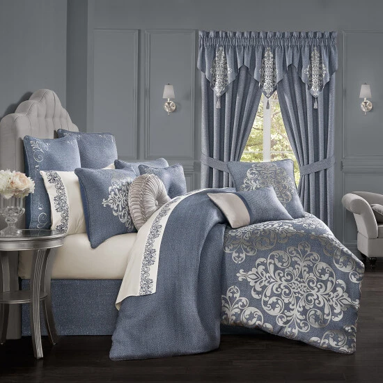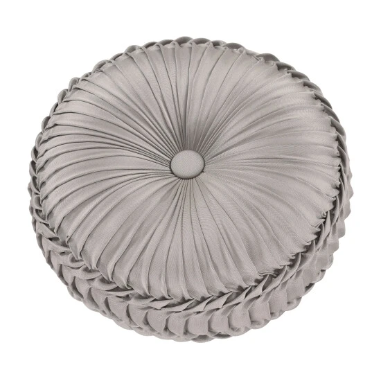 The Rachel Tufted Round Pillow uses a luxurious solid silver satin to create a one of a kind accent to this bedding ensemble. These unique round pillows are sewn by hand and are finished with a fabric-covered button on both sides. Pair this pillow with the Rachel bedding set by Five Queens Court for a complete look.