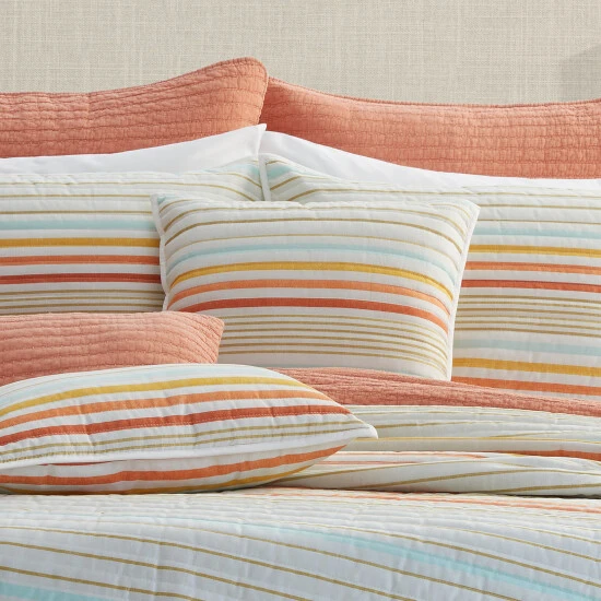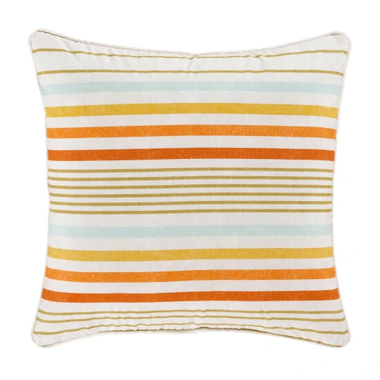 The Rebecca 18 Inch Throw Pillow offers a charming vintage colorway to your bedding or favorite sofa. Featuring a clean stripe print with a classic sunset beach inspired mix of coral, ocean blue, and sunnyΒ hues on soft 100% Cotton fabric. This accent pillow is plush to the touch and gets softer over time, making it a perfect finishing touch to your home decor. Add the coordinate comforter set or quilt to complete the look.