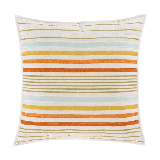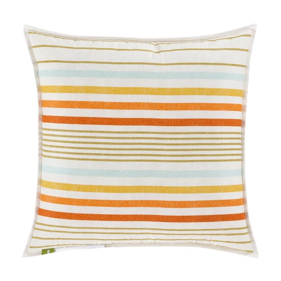 The Rebecca 18 Inch Embellished Throw Pillow offers a charming vintage colorway to your bedding or favorite sofa. Featuring a clean stripe print with a sunset beach inspired mix of coral, ocean blue, and sunnyΒ hues on soft 100% Cotton fabric. This accent pillow is plush to the touch and is finished with a 3/4″ flange binding, making it a perfect finishing touch to your home decor. Add the coordinate comforter set or quilt to complete the look.