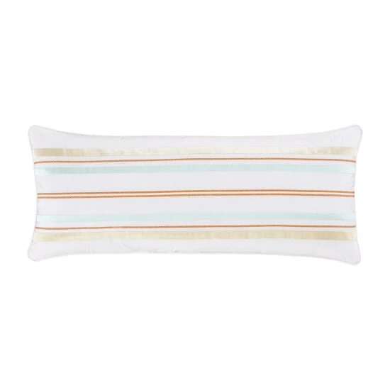 The Rebecca Lumbar Throw Pillow offers a charming vintage colorway to your bedding or favorite sofa. Featuring a clean stripe print with a sunset beach inspired mix of coral and sunnyΒ hues on soft 100% Cotton fabric. This accent pillow is plush to the touch and cozy, making it a perfect finishing touch to your home decor. Add the coordinate comforter set or quilt to complete the look.