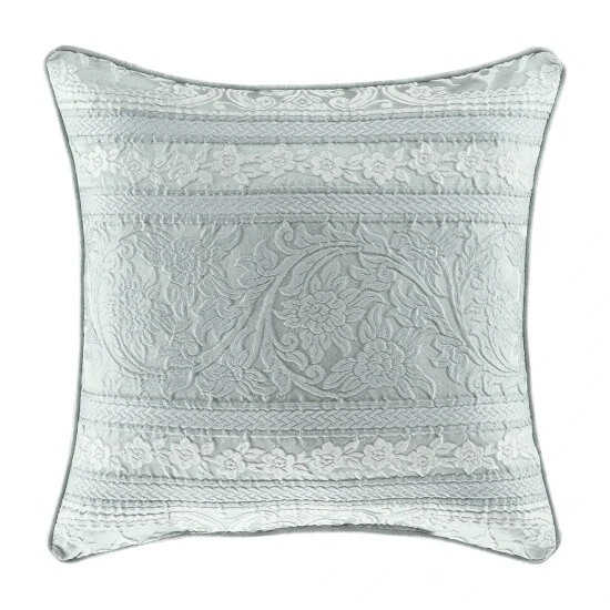 The Rivas 20″ Decorative Throw Pillow is exquisite with its use of spa blue hues. This beautiful square accent pillow features a horizontal decorative floral medallion stripe in a raised construction for texture, and reverses to a puff basket weave. Pair this luxury pillow with the Rivas bedding set for a complete look.
