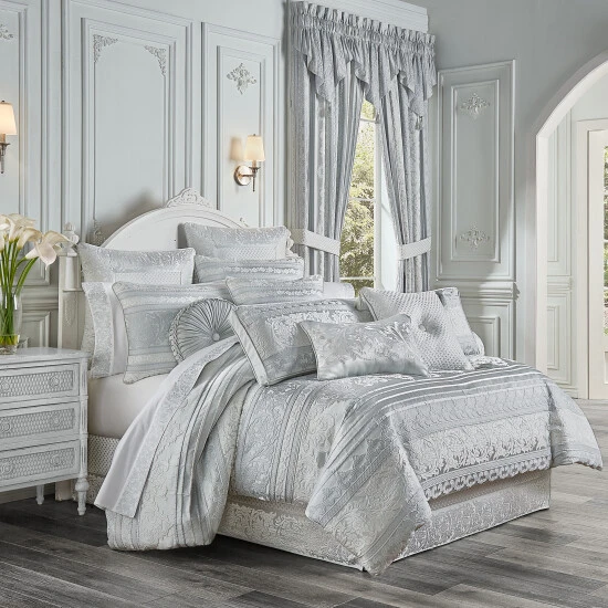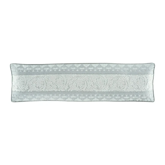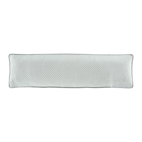 The Rivas Bolster Reading Pillow is beautifully constructed with an engineered dimensional horizontal decorative stripe with stunning floral medallion details . The reverse side features a woven puff-texture basket weave. The solid satin gusset is framed with spa satin piping. Pair this luxury reading pillow with the Rivas bedding set for a complete elegant look.