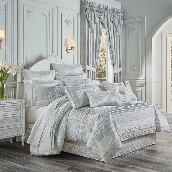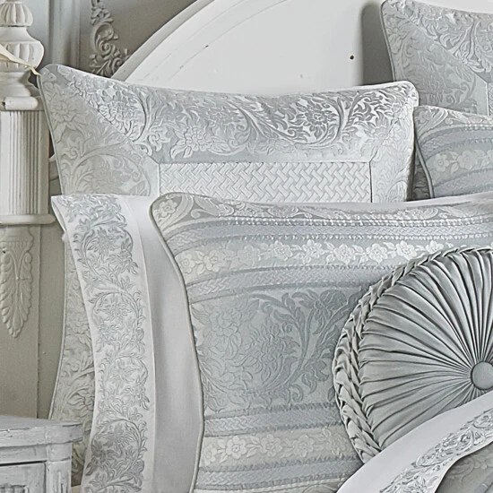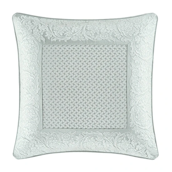 The Rivas Euro Sham is beautifully engineered with a traditional woven basket-weave mitered and framed with floral medallion details. The reverse of this sophisticated pillow sham features a simple yet beautiful solid spa color satin fabric. This 26″ Euro Sham is the perfect backdrop to this traditional collection. Pair this Euro sham with the Rivas bedding set for a complete look.