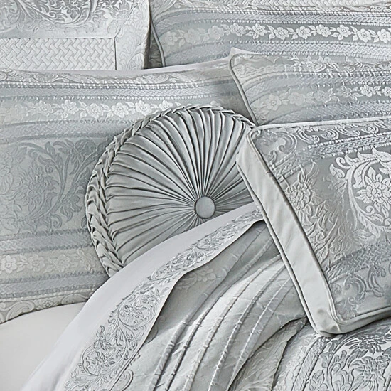 The Rivas Tufted Round Pillow uses a beautiful spa satin fabric to create a one of kind luxury accent piece. This 15″ unique round accent pillow is sewn by hand and is finished with a fabric covered button on both sides. Pair it with the Rivas bedding set for a complete look.