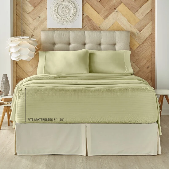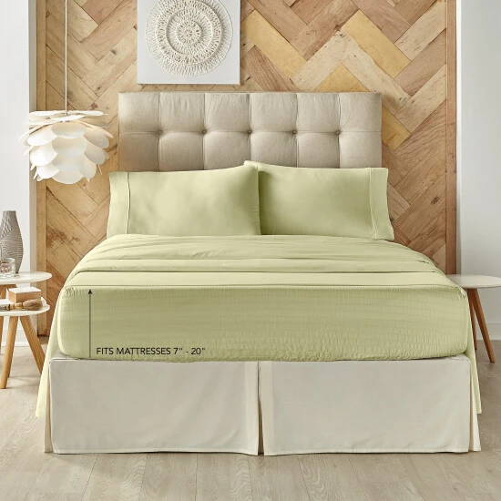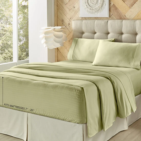 Add a luxurious feel to your bedding with this super-soft four-piece sheet set. Showcasing Royal Fit technology, a patented design, which guarantees to fit every mattress perfectly, every time. The unique fitted sheet construction stretches to fit the deepest mattress, mattress toppers, and works great with smaller low-profile mattresses (7″ – 20″).