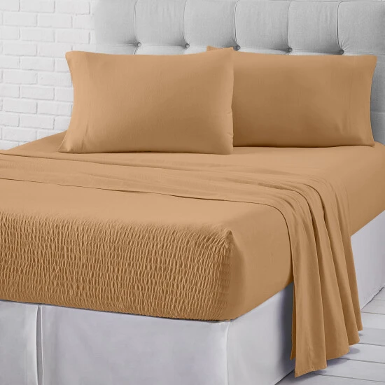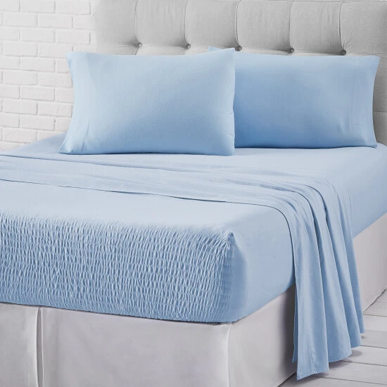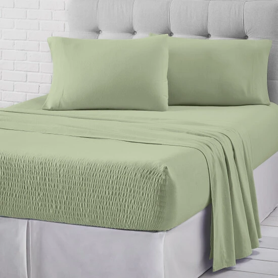 Add a cozy Winter warmth foundation to your bed with the Five Queens Court 100% Cotton Flannel Sheet Set. Featuring Royal Fit Technology, a patented design, which guarantees to fit every mattress perfectly, every time. The unique fitted sheet construction stretches to fit the deepest mattress, mattress toppers, and works great with smaller low-profile mattresses (fits 7″ – 20″). Unlike most fitted sheets that do not fit well or stay in place throughout the night, our fitted sheet solution will never shift or slip-off. The noticeably soft 100% Cotton Flannel fabric provides a smooth and comfortable feel, keeps your body warm during colder weather, and is machine washable for easy care. Available in multiple on-trend fashion colors to fit any bedroom dΓ©cor. The sheet set includes a flat sheet, a fitted sheet, and two pillowcases (one pillowcase in Twin).