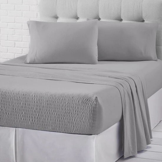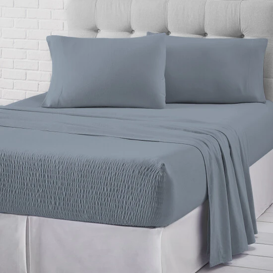 Add a cozy yet casual foundation to your bed with the Five Queens Court 100% Cotton Jersey Knit Sheet Set. Featuring Royal Fit Technology, a patented design, which guarantees to fit every mattress perfectly, every time. The unique fitted sheet construction stretches to fit the deepest mattress, mattress toppers, and works great with smaller low-profile mattresses (fits 7″ – 20″). Unlike most fitted sheets that do not fit well or stay in place throughout the night, our fitted sheet solution will never shift or slip-off. The noticeably soft 100% Cotton Jersey Knit fabric provides a smooth breathable feel like your favorite lounge T-Shirt and gets softer with each wash. Available in multiple on-trend fashion colors to fit any bedroom dΓ©cor. The sheet set includes a flat sheet, a fitted sheet, and two pillowcases (one pillowcase in Twin).