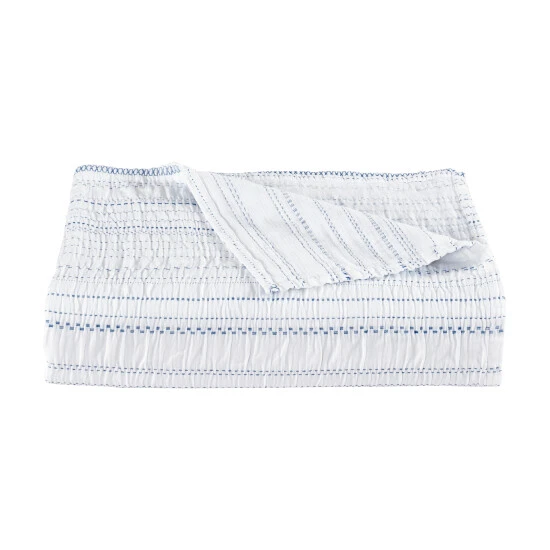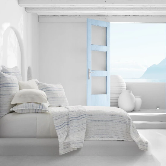 Inspired by luxury yet casual Beach House decor, the Sandpiper Quilt offers relaxed versatility and effortless elegance to your sleep space. Crafted in Portugal from fine cotton yarns that develop incredible comfort and softness over time. Detailed with relaxed and inviting woven dobby stripes in blue on a crisp white ripple-textured airy fabric. This lush lightweight quilt adds a refreshed dimension to your space, and coordinates beautifully with the Sandpiper collection.