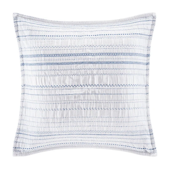 Crafted in Portugal from exceptionally fine 100% Cotton yarns, the Sandpiper Euro Sham adds relaxed versatility and effortless layering to your dΓ©cor. Featuring a relaxed woven dobby stripe in blue on a crisp white ripple-textured fabric. This lovely accent is finished with a flange trim, adding a refreshed dimension to your space, and coordinates beautifully with the South Hampton Pillows and the Sandpiper quilt.