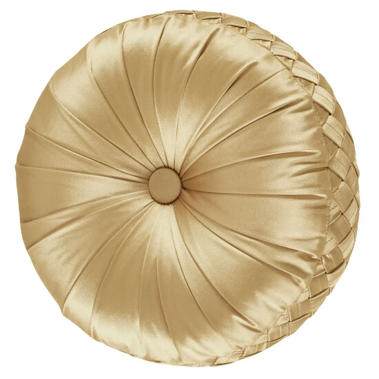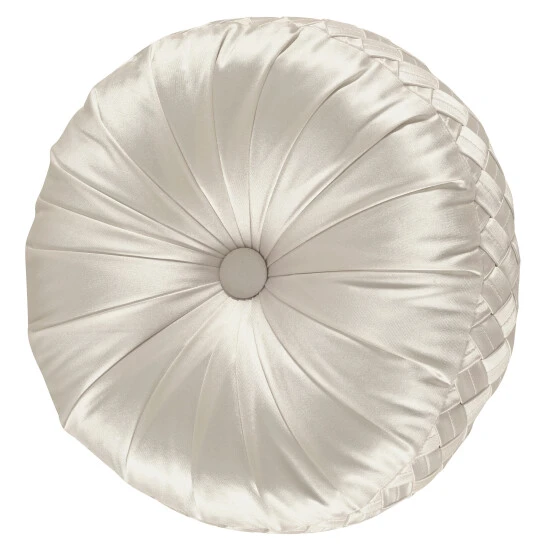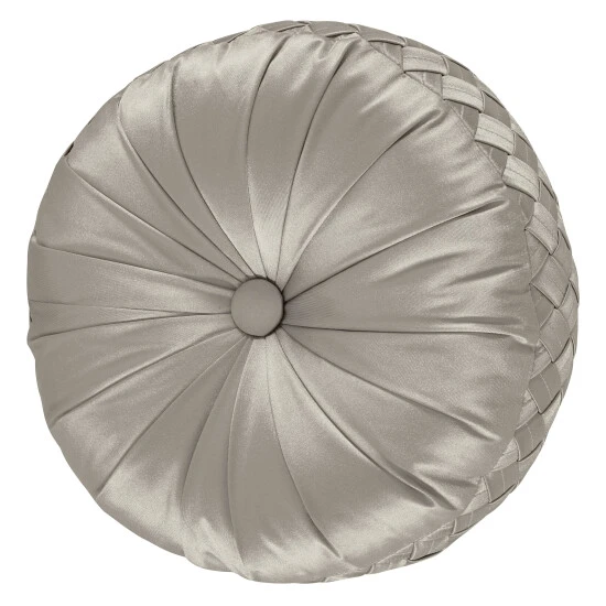 Pad your seating with the glam elegance of this satin throw pillow. This hand-sewn round pillow features a basketweave gusset with hand pleating to form a unique, quality design, and a single button adds dimension to the pillow.