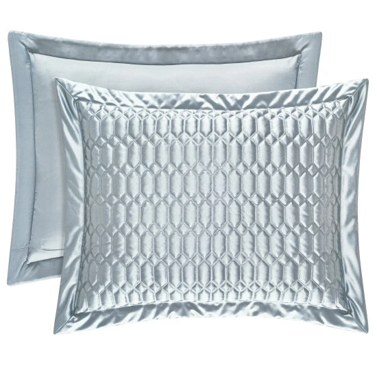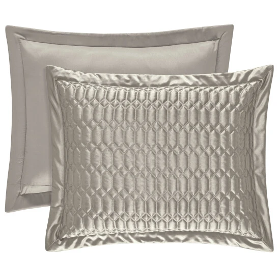 The individually sold Pillow Shams perfectly match the glamorous Saranda coverletwith the custom geoetric quilt pattern and a 2′ mitered border. The shamsalso include a hidden zipper.Β