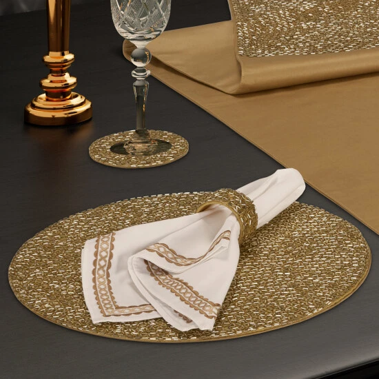 Celebrate the season in style with luxurious Christmas home dΓ©cor that features just the right amount of shimmer. The Shimmer 2 Piece Placemats/Chargers are crafted with bands of bugle beads and dyed-to-match plush satin fabric. A truly tasteful piece of Holiday glam that pairs beautifully with the Shimmer tableware and home accents. Available crimson, gold, and evergreen color options.