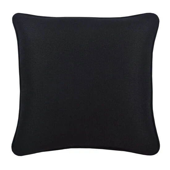 The 18 Inch Throw Pillow features a printed floral Jacobean centered on the face in lovely tones of lime, gold, red, and teals highlighted by a black ground. The pillow reverses to a woven solid black color and is finished by a 1/4″ solid piping.
