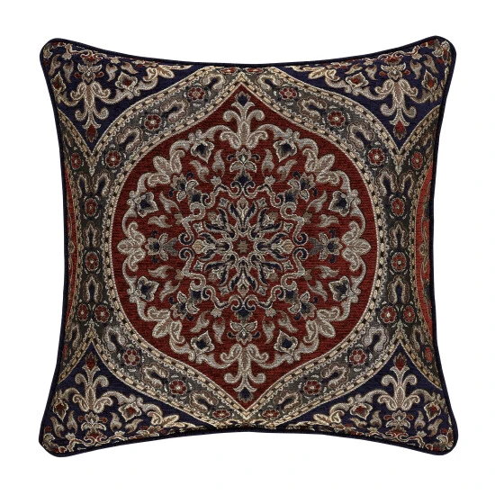 The Tamera 20 inch decorative throw pillow is made using an intricately woven damask in shades of navy, red and glimmering golds. The rich chenille is mingled with high twist yarns creating depth and an array of textures making this baroque design a classic.