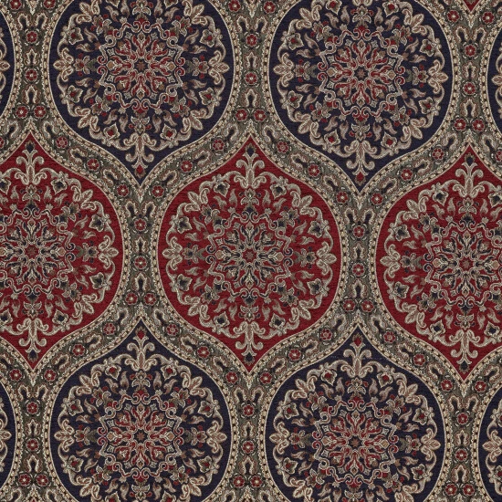 The Tamera 4 piece comforter set features an intricately woven damask in shades of navy, red and glimmering golds. The rich chenille mingled with high twist yarns creating depth and an array of textures making this baroque design a classic. Paired with matching hidden zipper pillow shams and a chenille tailored bedskirt in navy, the Tamera Collection is a showstopper. Coordinate shams, throw pillows and window treatments are available separately.
