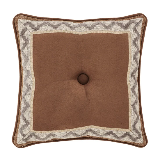 The Tatum 18″ Decorative Pillow is bordered with a textured jacquard in a zig zag pattern combined with faux suede and button detail. This engineered pillow is the perfect addition to the bedding ensemble.